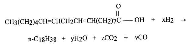 When for example a long-chain vegetable oil fatty acid is hydrogenated, the product is a linear hydrocarbon or a mixture of linear hydrocarbons with high cetane number but poor cold properties.