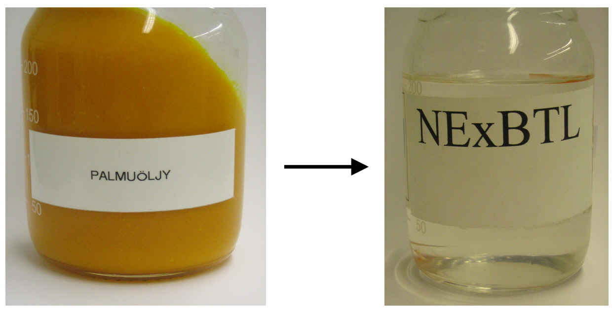 Malaysian palm oil (food oil) will be the major raw material for NExBTL. It has been proposed that imports of soya and palm oil from rain forest countries to European Union should be forbidden, because the soya and palm plantations destroy rainforests.
